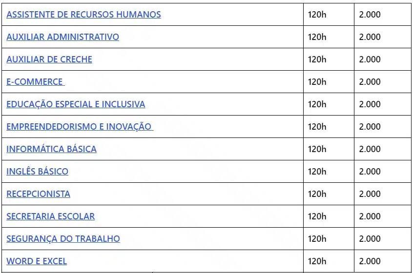 Ao todo são 12 cursos on-line, com carga horária de 120 horas e para participar da seleção, é necessário seguir os requisitos pelo edital: ter idade mínima de 16 anos, completos na data do início do curso, ter acesso à internet e noções básicas de informática e de navegação na internet.
