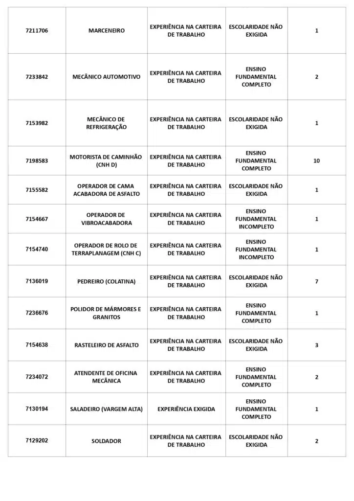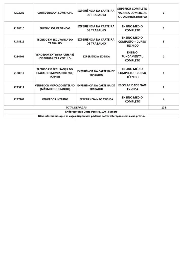 As oportunidades de emprego são para diversos cargos e níveis de escolaridade