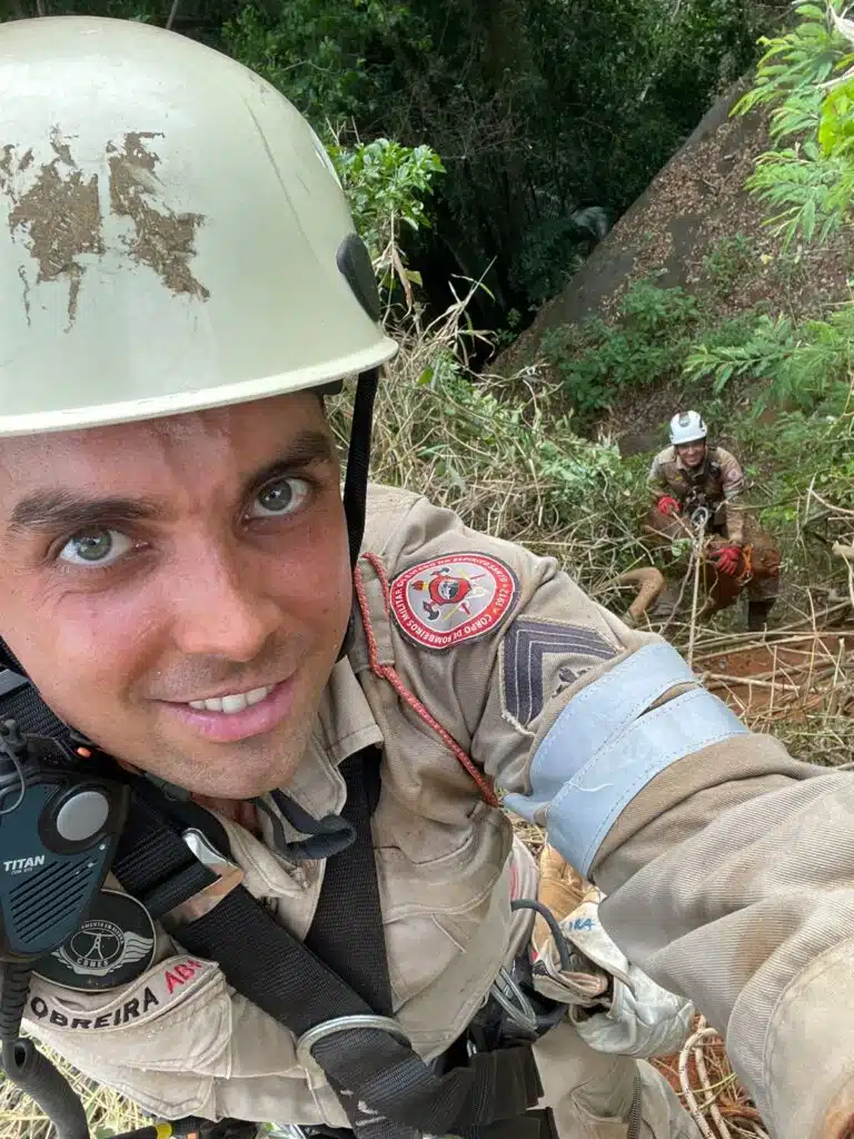 Portanto, ao chegarem no local, os bombeiros tiveram dificuldade de acessar a região por conta de ser mata fechada, com muito cipó e arranha gato. Foi necessário o uso de facão e foice para subir até o alto do pasto e iniciar a operação com intuito de resgatar o animal.