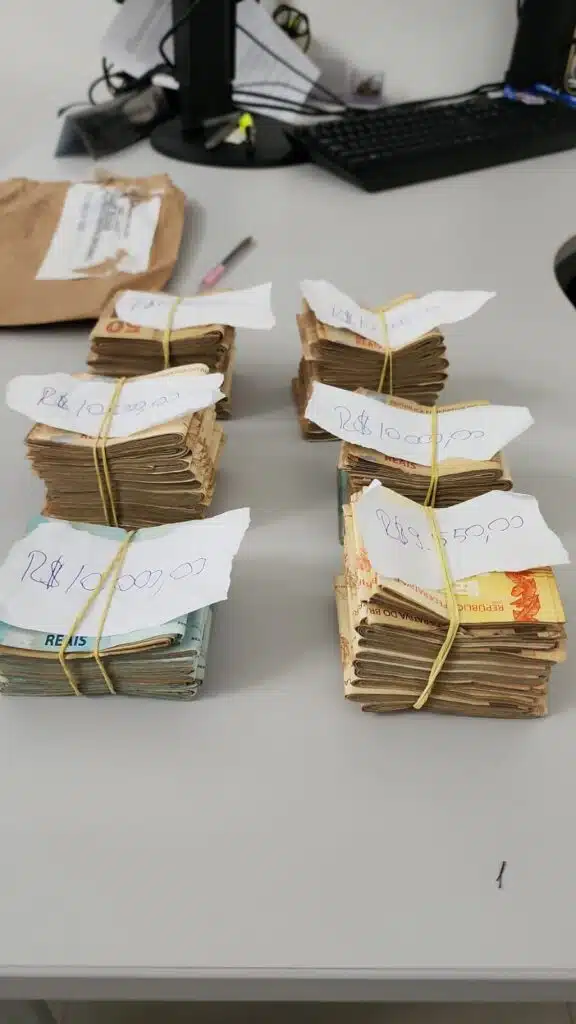 A busca e apreensão arrecadou aparelhos celulares e computadores, além de três armas de fogo. No gabinete de trabalho de um dos auditores fiscais investigados foi apreendido também dinheiro em espécie no valor aproximado de R$ 60.000,00 (sessenta mil reais).
