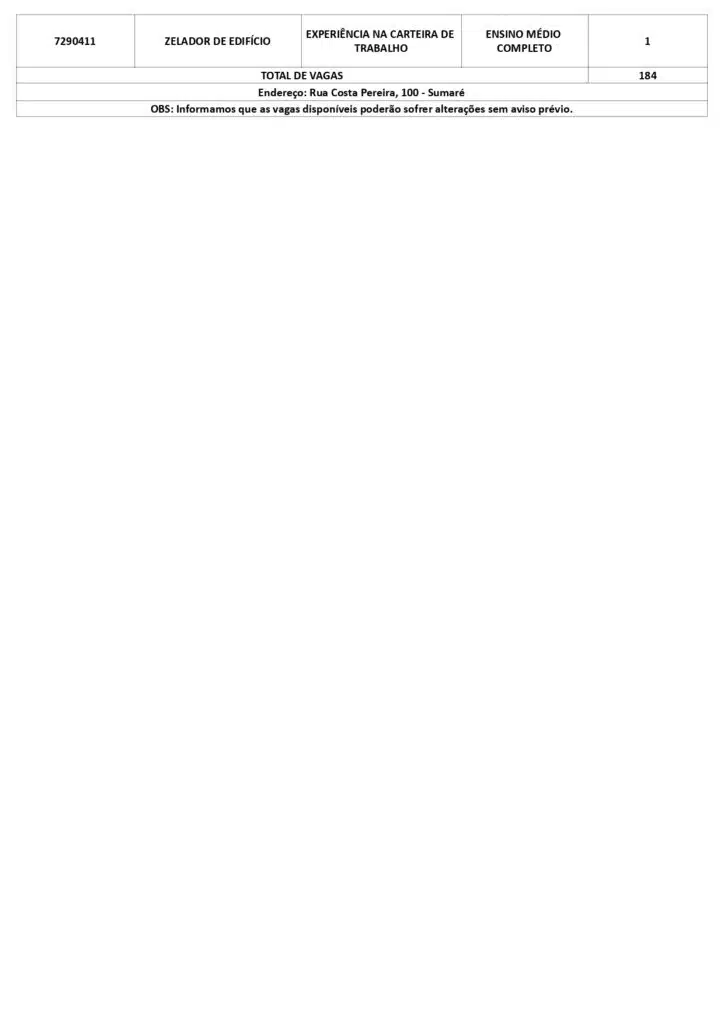 As oportunidades de emprego são para diversos cargos e níveis de escolaridade