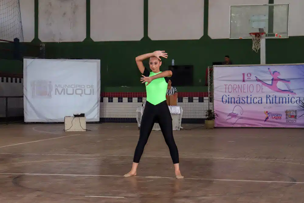 A Secretaria de Esportes e Lazer de Muqui, realizou o 1° Torneio de Ginástica Rítmica no sábado, dia 18 de novembro. O evento aconteceu no Ginásio de Esportes “Américo Maia”, no bairro Boa Esperança, e teve a frente a diretora de esportes, Lorena Botelho.
