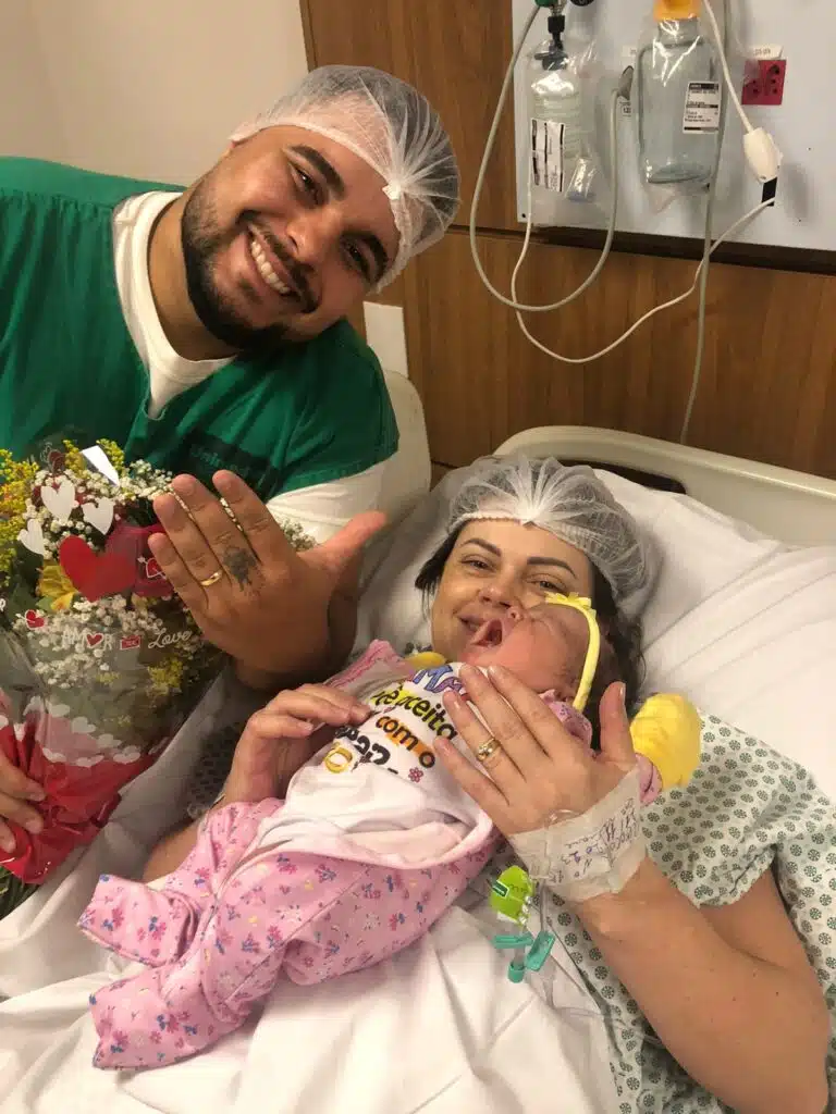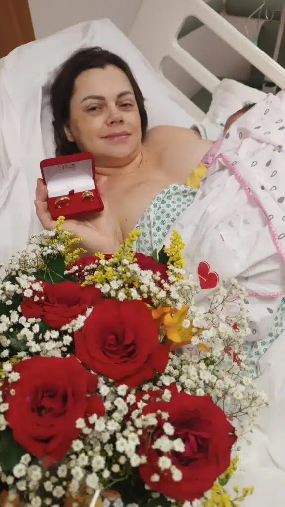 “Decidi que faria o pedido no dia do nascimento da nossa filha. Encomendei as alianças, organizei tudo com a ajuda da equipe da Unimed, e até encomendei um buquê. O parto estava programado para o final de novembro, e tudo estava planejado desde setembro, guardado na casa de uma amiga para manter o segredo. Eu me senti muito realizado, mesmo acreditando que Uiara disse ‘sim’ enquanto ainda estava anestesiada”, brinca.