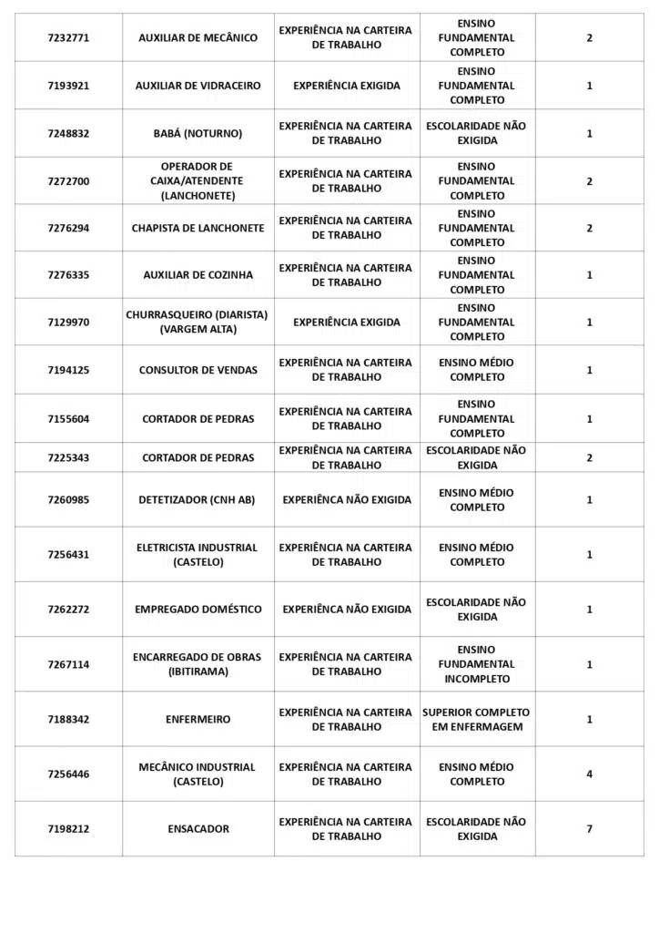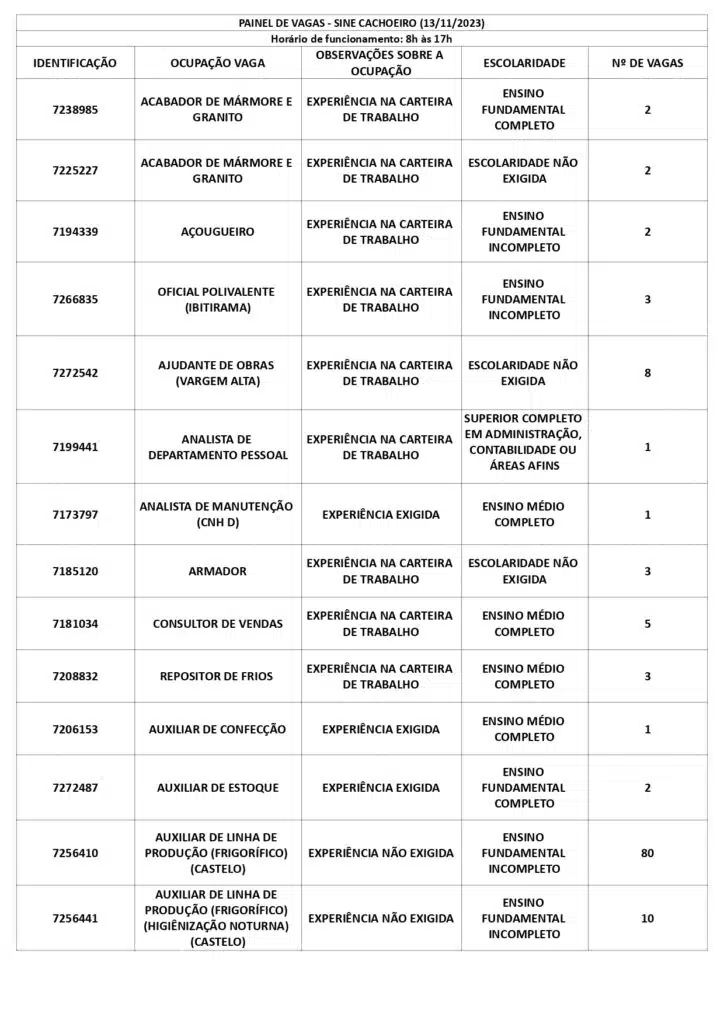Receba as principais notícias no seu WhatsApp! clique aquiAs oportunidades de emprego são para diversos cargos e níveis de escolaridade e para cidades do Sul do ES. No entanto, é preciso fazer um cadastro no Sine Cachoeiro para concorrê-las.