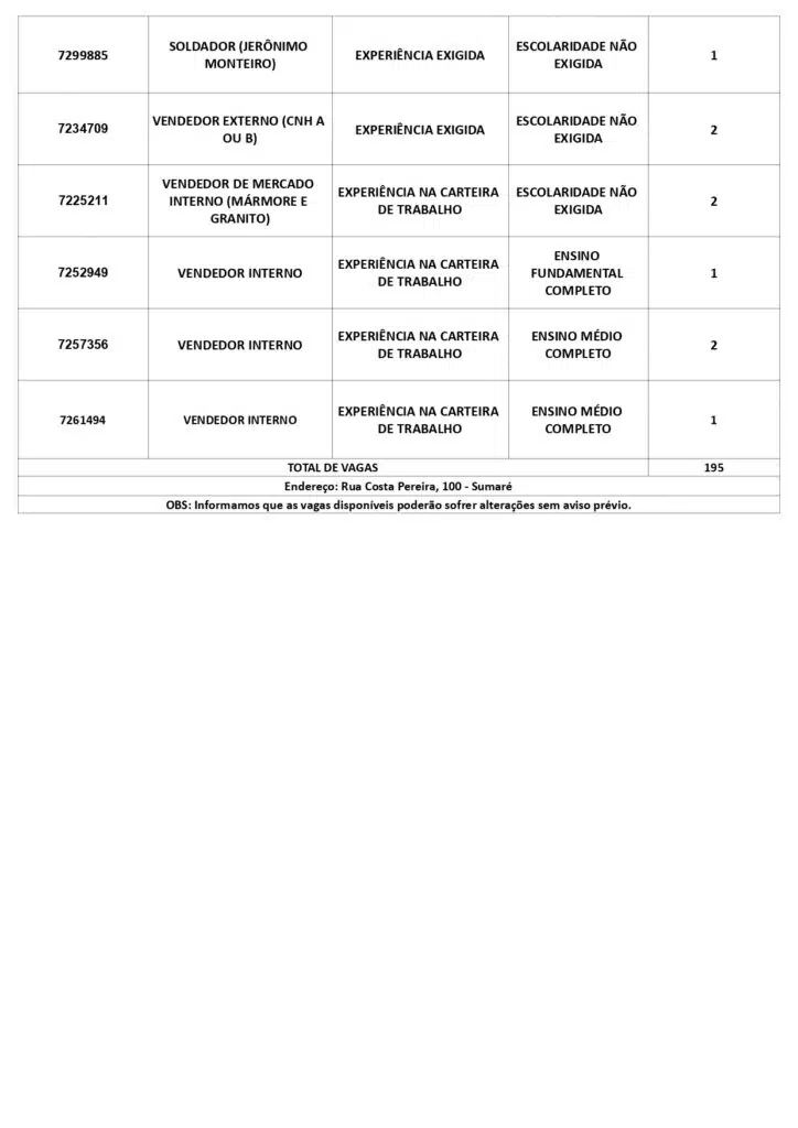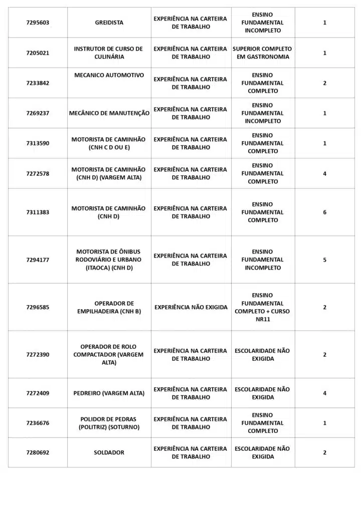 As oportunidades de emprego são para diversos cargos e níveis de escolarida