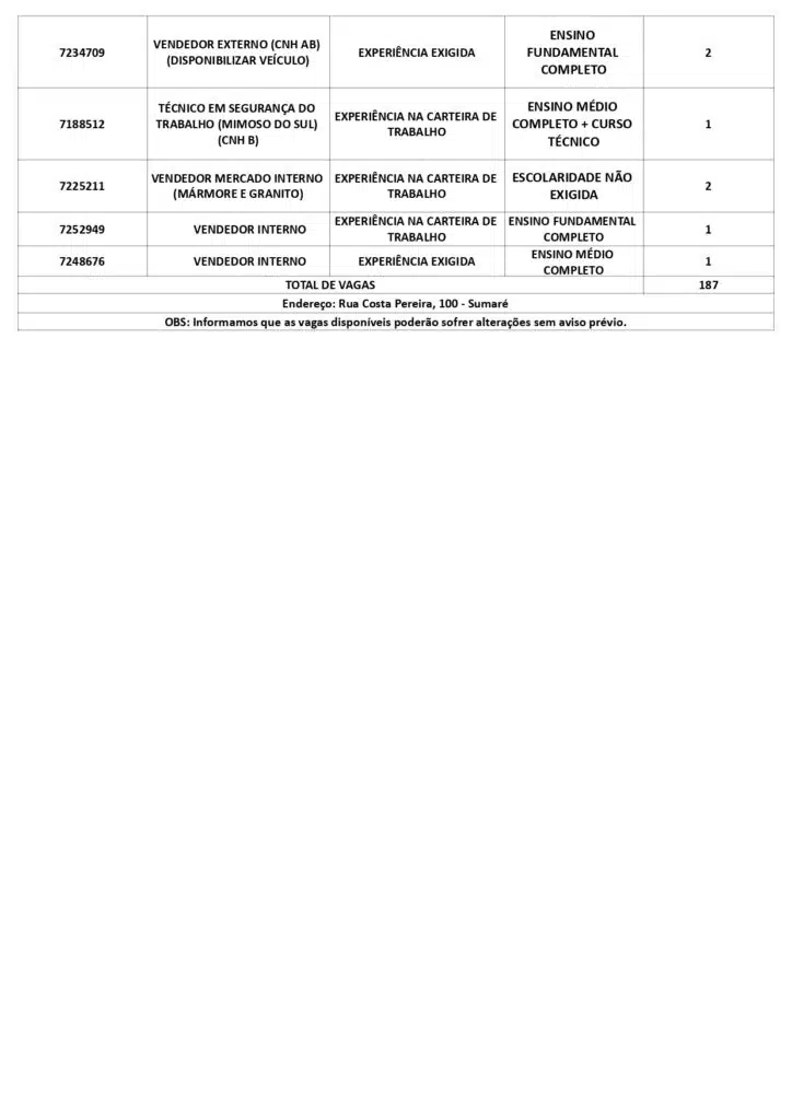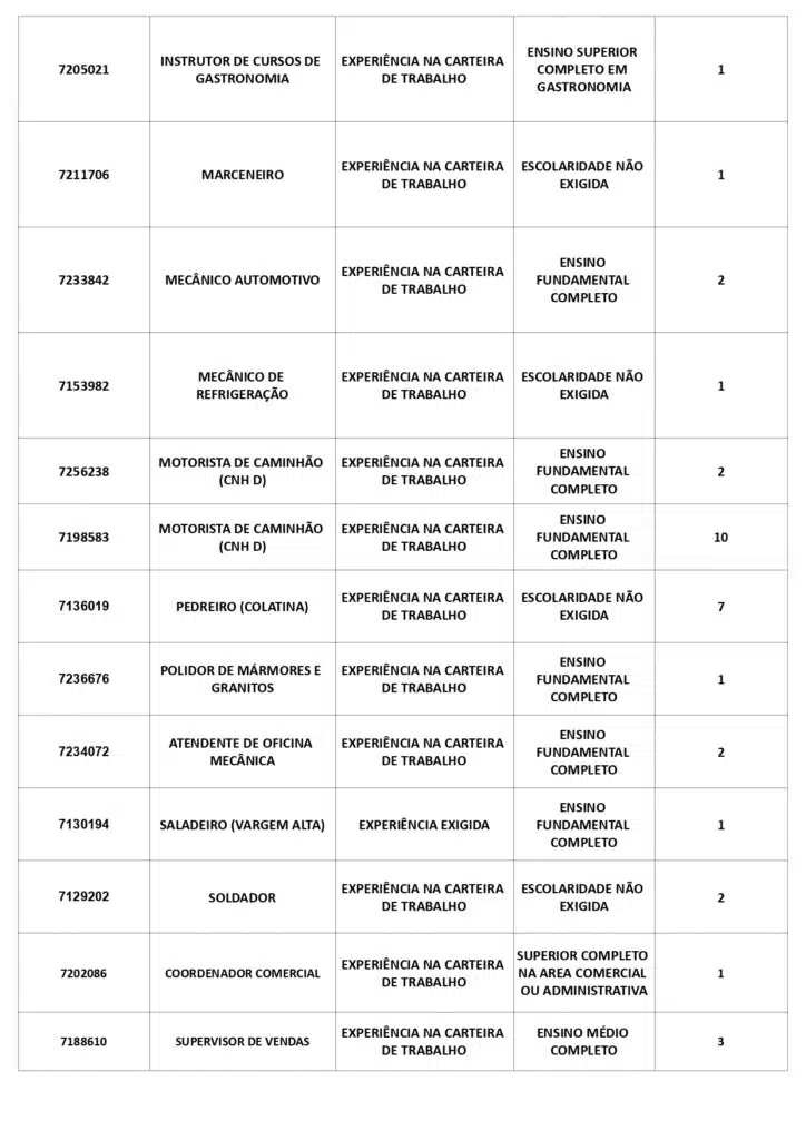 As oportunidades de emprego são para diversos cargos e níveis de escolaridade