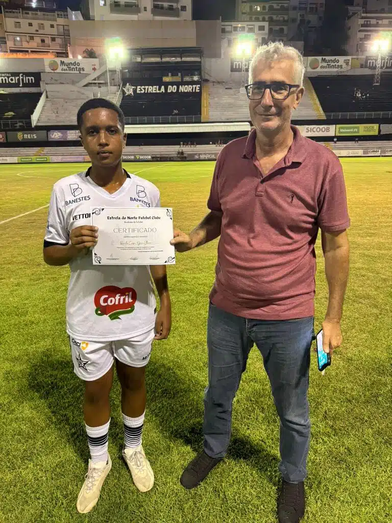 Logo após a inauguração do Centro Administrativo, os alunos da “Academia de Futebol” do Estrela, que recebe crianças e adolescentes de 6 a 13 anos, ganharam diplomas.