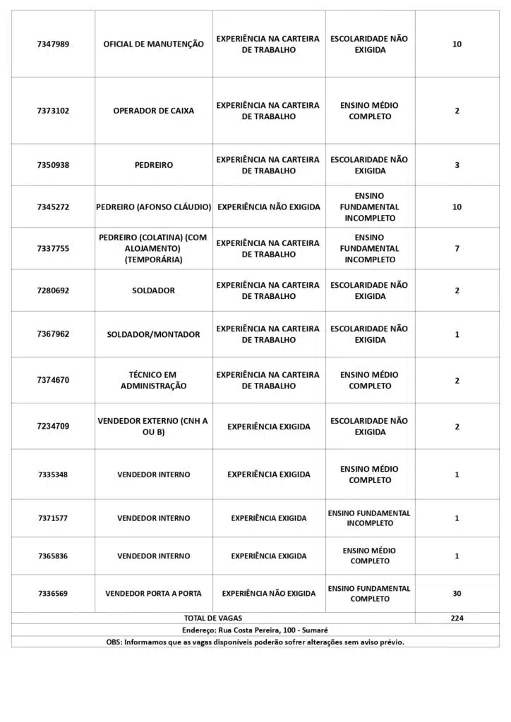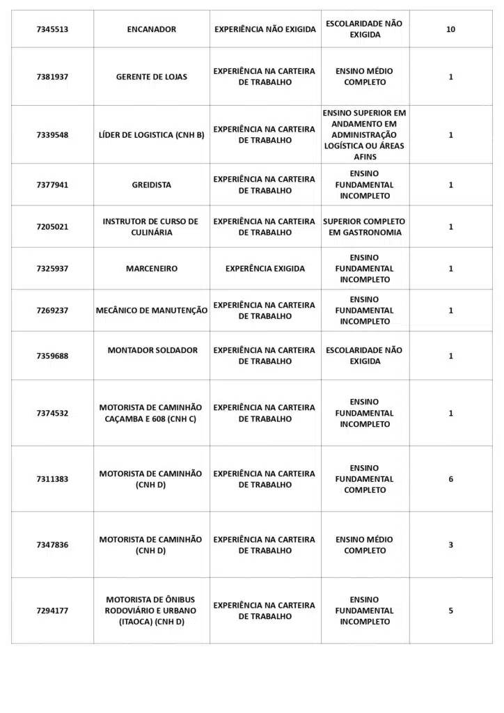 As oportunidades de emprego são para diversos cargos e níveis de escolaridade