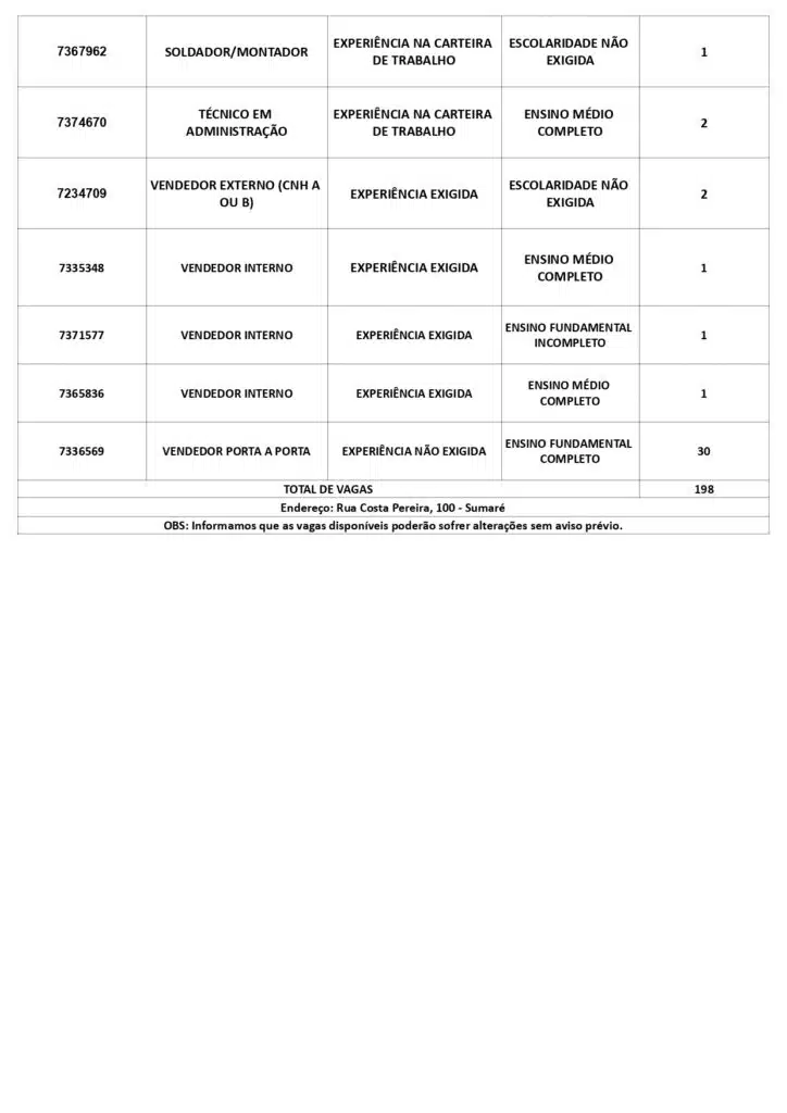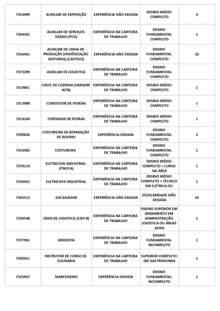 As oportunidades de emprego são para diversos cargos e níveis de escolaridade