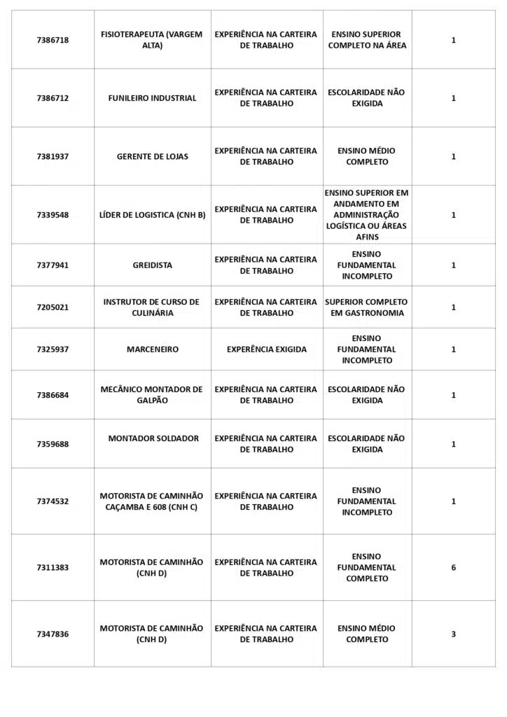 As oportunidades de emprego são para diversos cargos e níveis de escolaridad