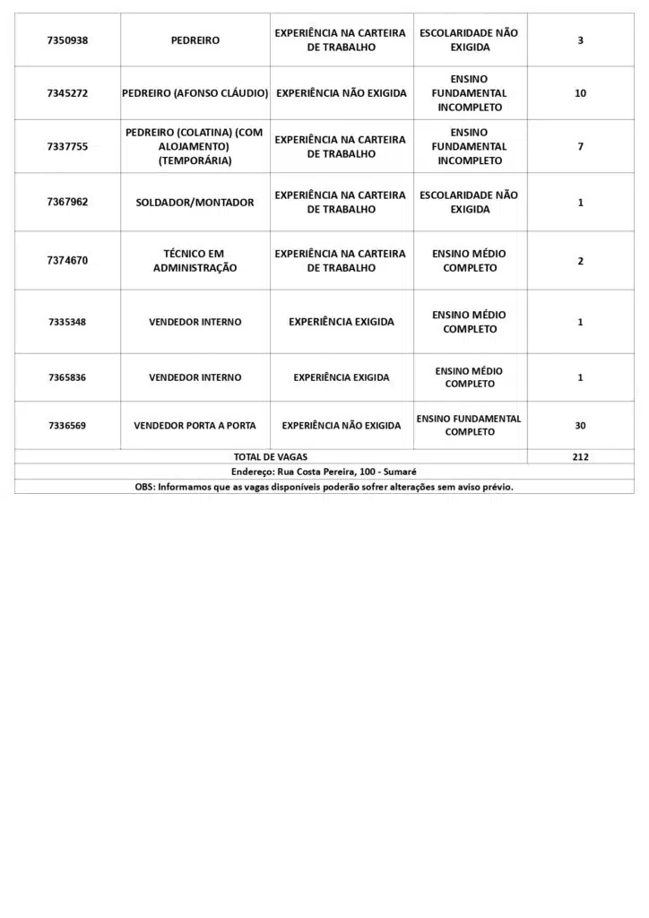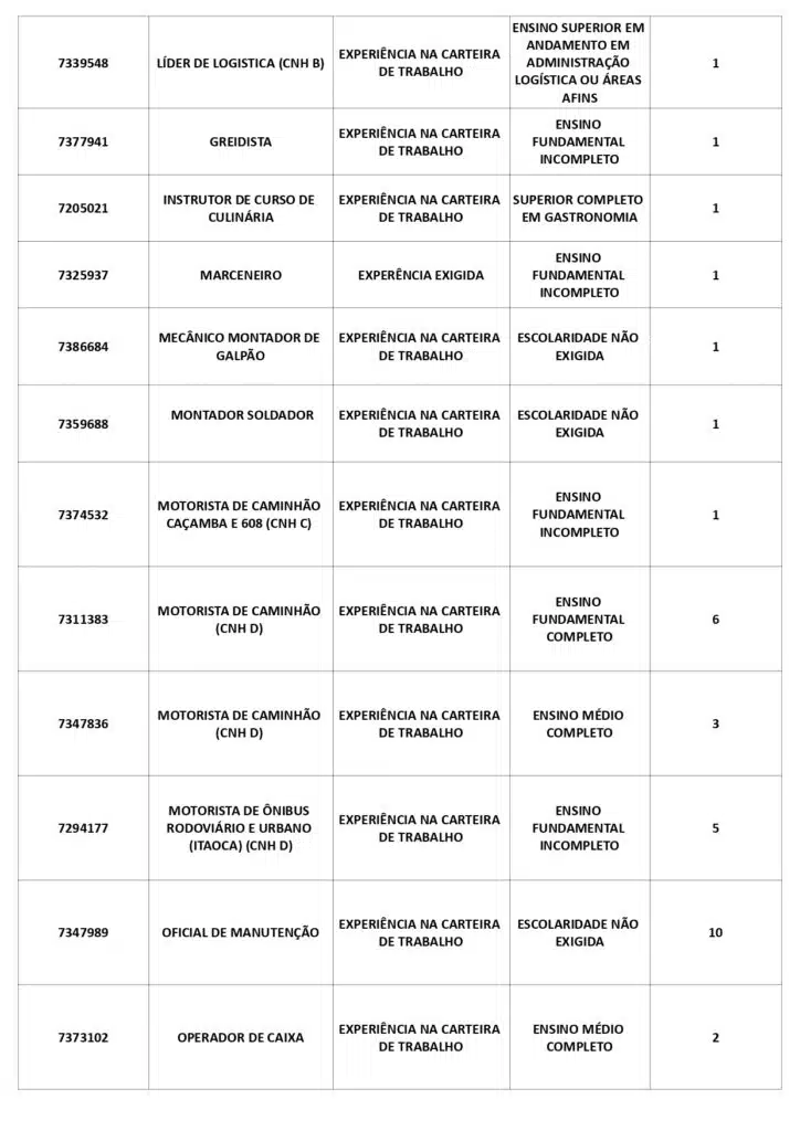 As oportunidades de emprego são para diversos cargos e níveis de escolarid