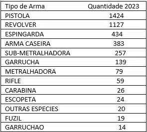 Os dados do programa de Segurança Pública mostra um aumento de 82 novas armas apreendidas em 2023 em relação à 2022. No primeiro semestre de 2023, 317 armas foram tiradas do tráfico. Já no segundo semestre do mesmo ano, no aumento de apreensão de armas, o número saltou para 343 armas apreendidas. O relatório revela ainda que 79% dos homicídios são praticados com o uso de arma de fogo.