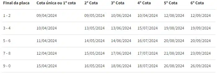No Espírito Santo, os boletos, que não são mais entregues em casa, já estão disponíveis no site do Departamento Estadual de Trânsito (Detran|ES) para pagamento. O vencimento da cota única ou primeira parcela, entretanto, ocorrerá apenas em abril. Quem optar pela cota única terá 15% de desconto no IPVA.![]()