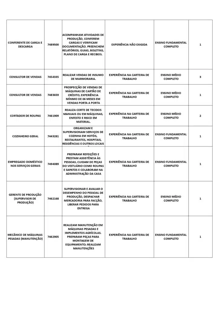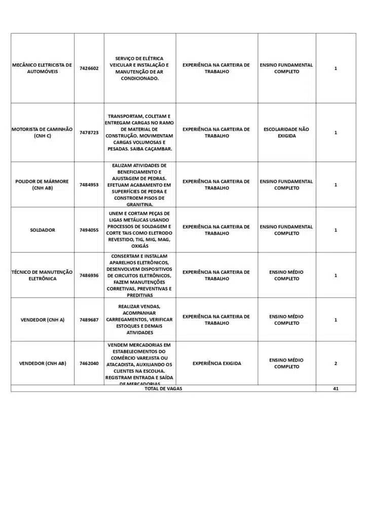 Receba as principais notícias no seu WhatsApp! clique aquiAs oportunidades de emprego são para diversos cargos e níveis de escolaridade e para cidades do Sul do ES. No entanto, é preciso fazer um cadastro no Sine Cachoeiro para concorrê-las.