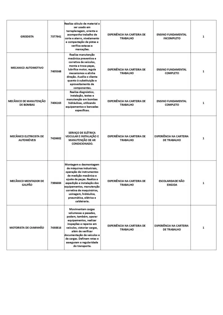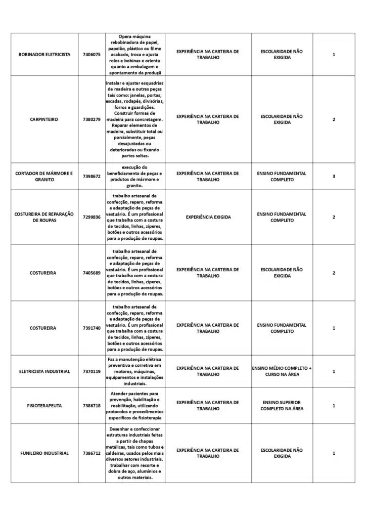 As oportunidades de emprego são para diversos cargos e níveis de escolaridade.
