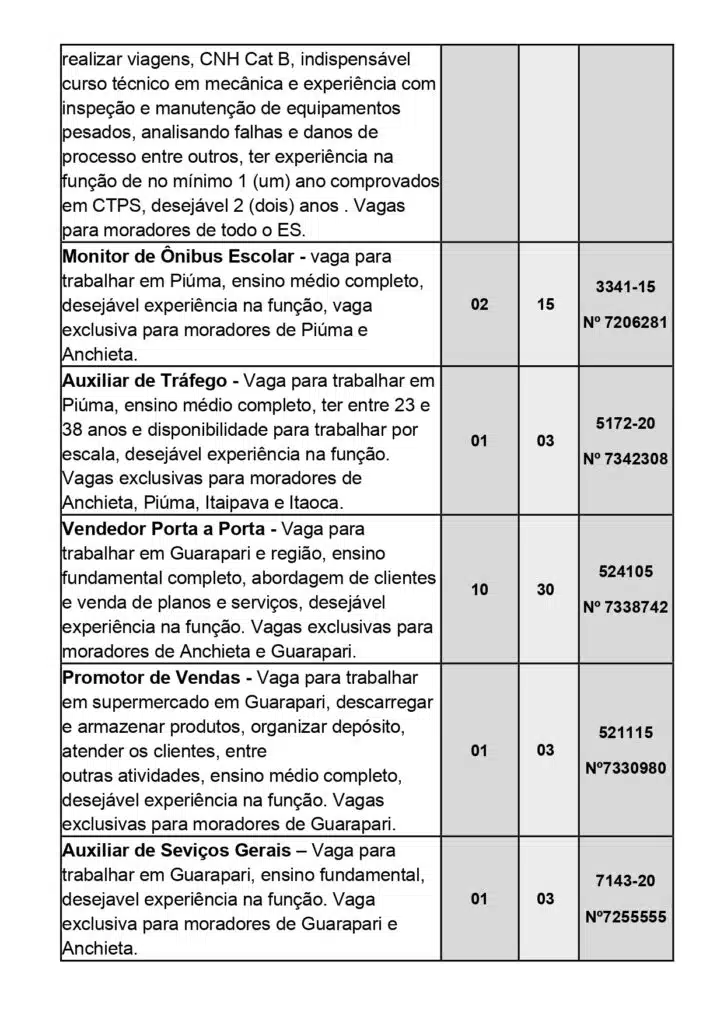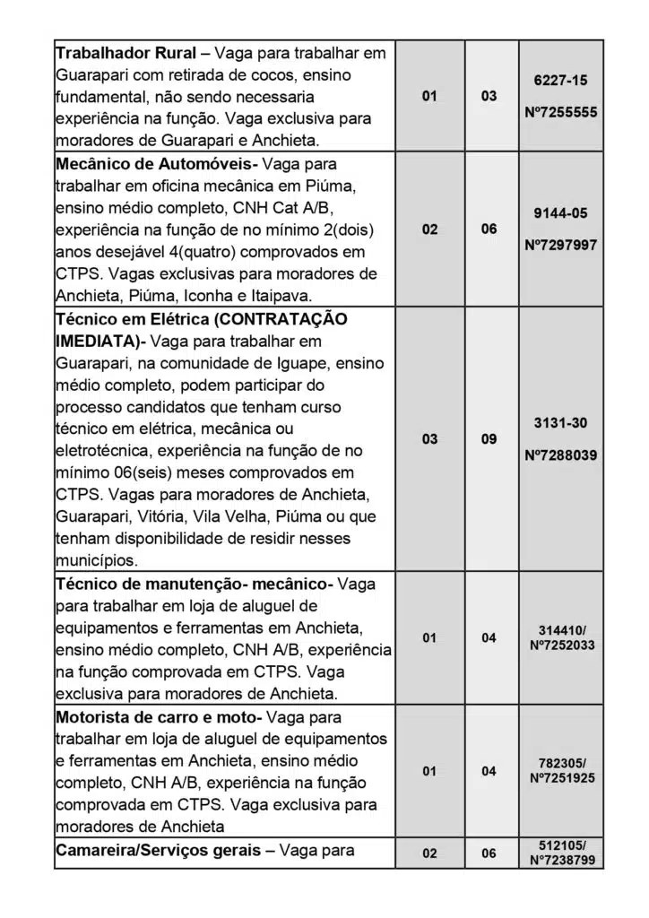 Ainda segundo o Sine Anchieta, as vagas de empregos poderão sofrer alteração sem aviso prévio. Além disso, para cada oportunidade, há um limite de encaminhamento especificado pela empresa.