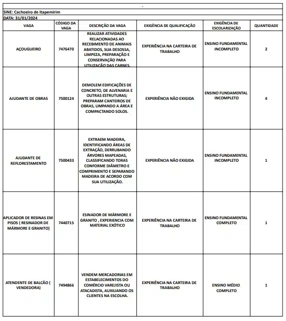 As oportunidades de emprego são para diversos cargos e níveis de escolaridade e para cidades do Sul do ES. No entanto, é preciso fazer um cadastro no Sine Cachoeiro para concorrê-las