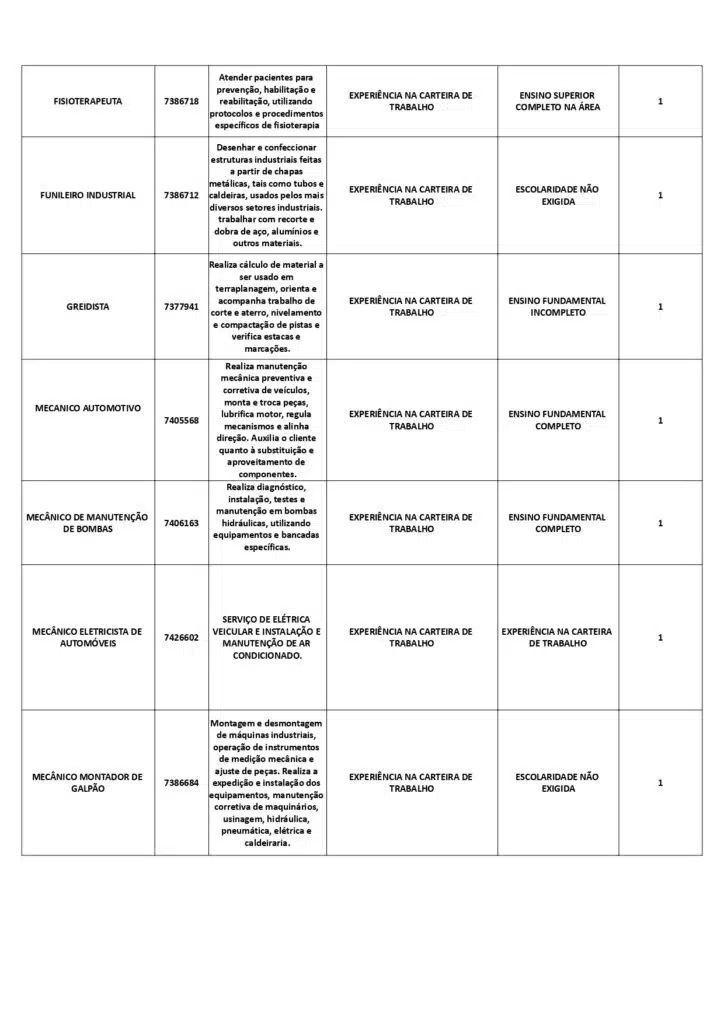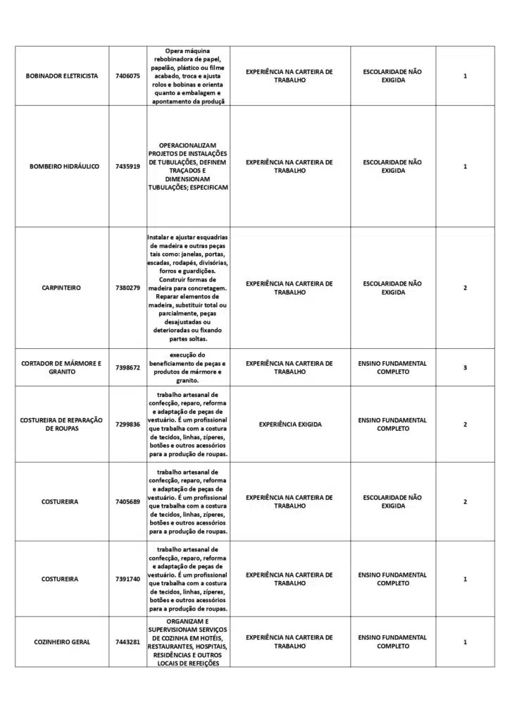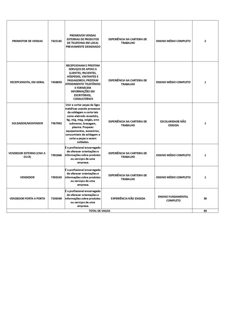 As oportunidades de emprego são para diversos cargos e níveis de escolaridade