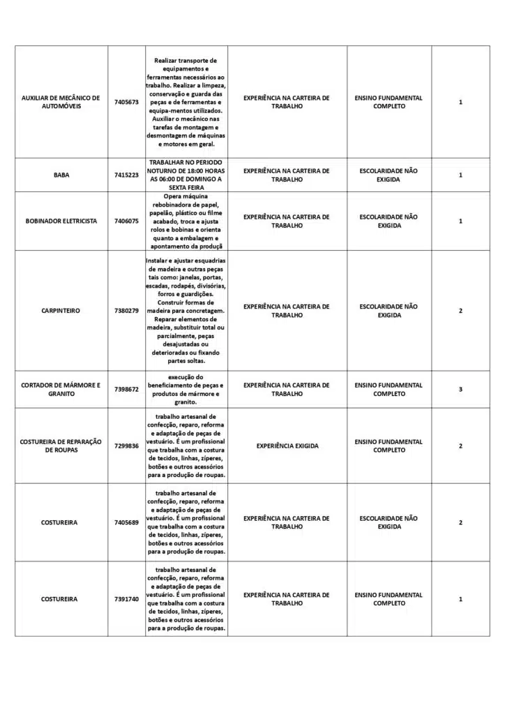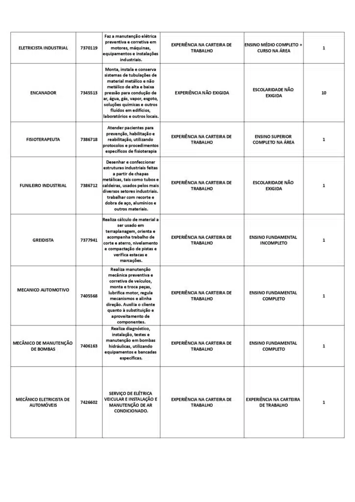 As oportunidades de emprego são para diversos cargos e níveis de escolaridade