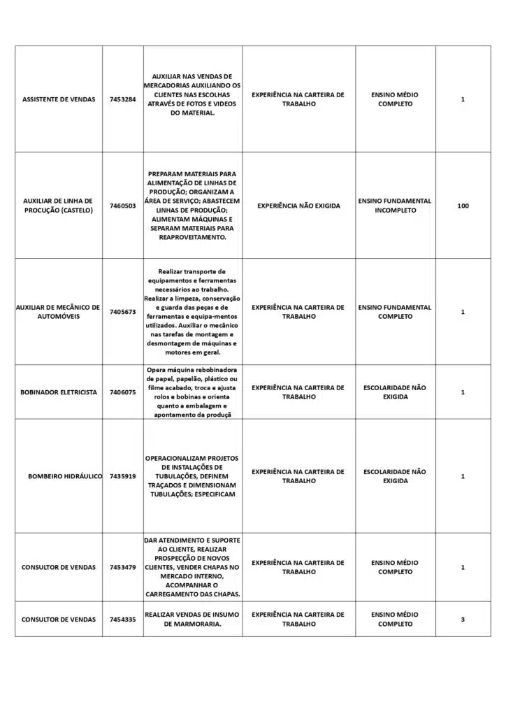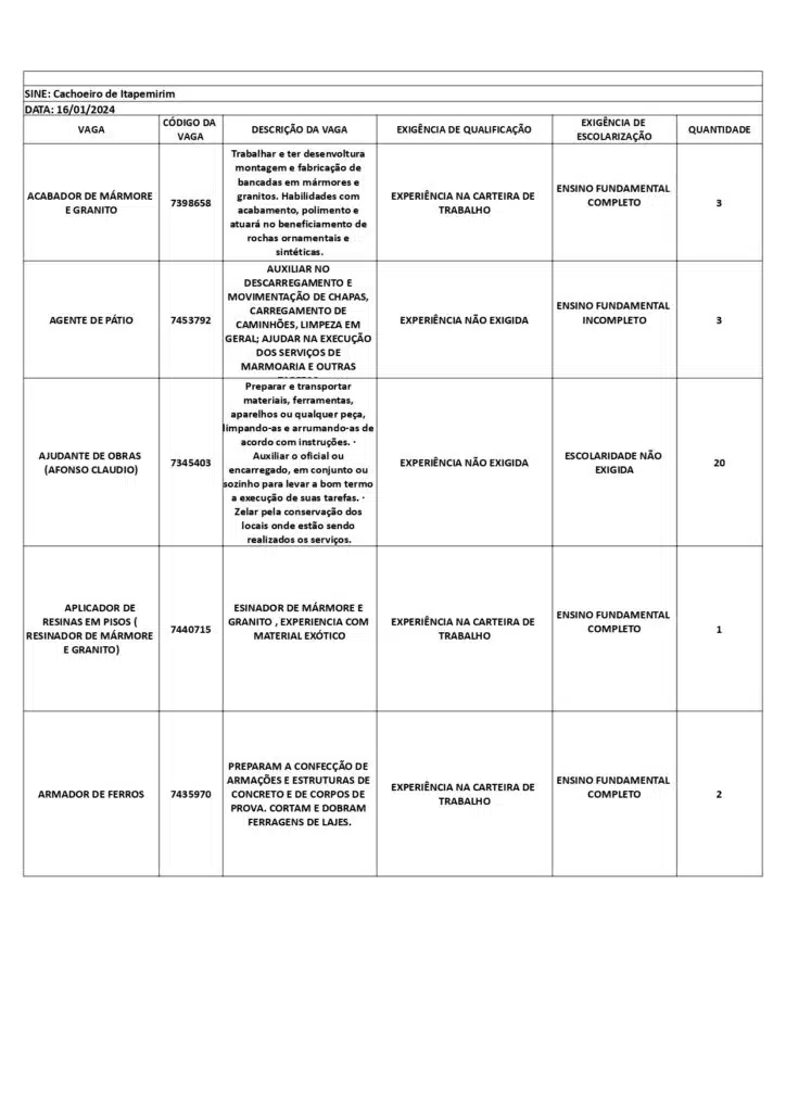 Receba as principais notícias no seu WhatsApp! clique aquiAs oportunidades de emprego são para diversos cargos e níveis de escolaridade e para cidades do Sul do ES. No entanto, é preciso fazer um cadastro no Sine Cachoeiro para concorrê-las.