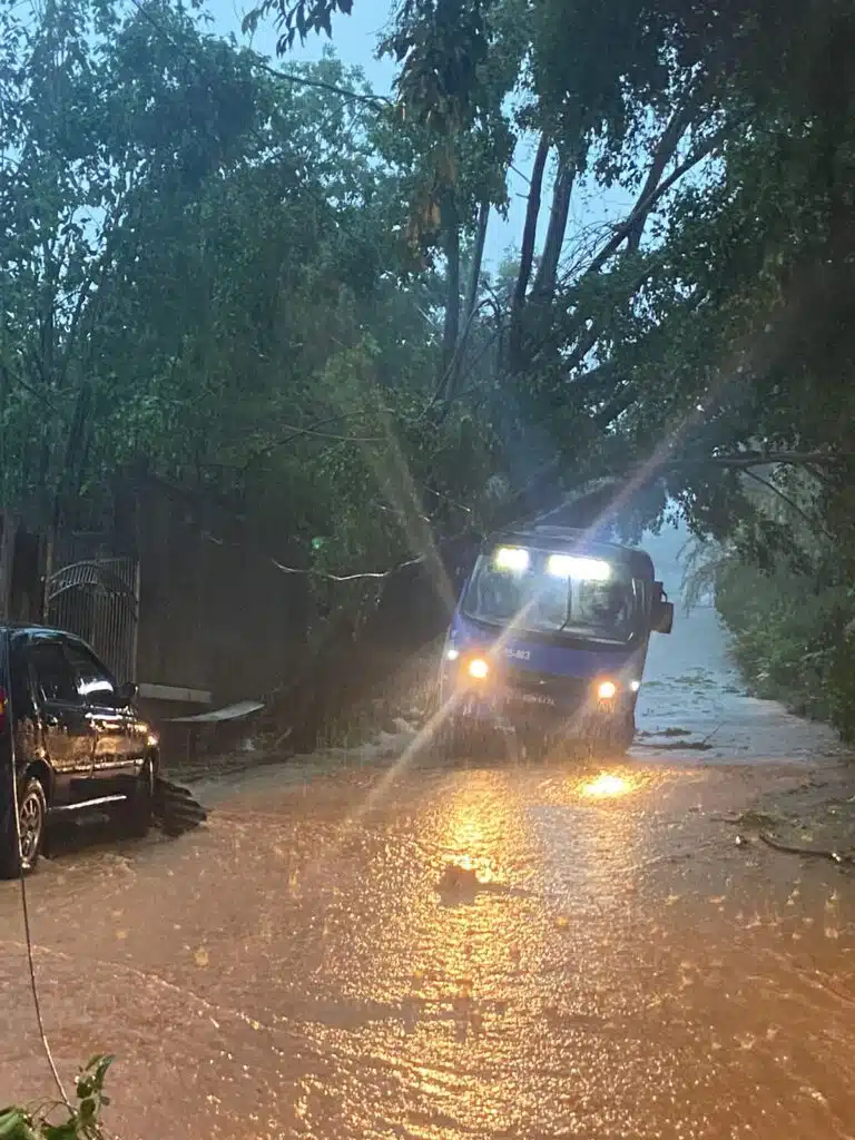 A cidade está sob alerta laranja. Segundo o Instituto Nacional de Meteorologia (Inmet), há risco de corte de energia elétrica, estragos em plantações, queda de árvores e de alagamentos.