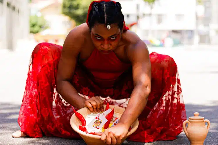 “Para Rosas e Tridentes” é um espetáculo de dança que une, na cena, as artes do corpo de forma dialógica e poética, com percepções e práticas contemporâneas do movimento. O argumento cerne desta obra é a transposição das vivências de terreiro, no que tange a mística e mítica de Exús e Pombogiras, para colocar em cena o feitiço do corpo contemporâneo das ruas.