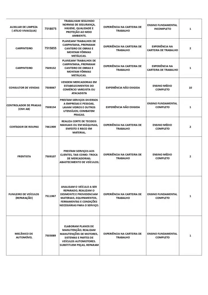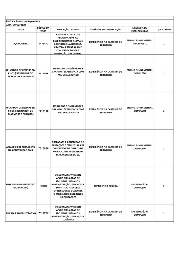 Receba as principais notícias no seu WhatsApp! clique aquiAs oportunidades de emprego são para diversos cargos e níveis de escolaridade e para cidades do Sul do ES. No entanto, é preciso fazer um cadastro no Sine Cachoeiro para concorrê-las.