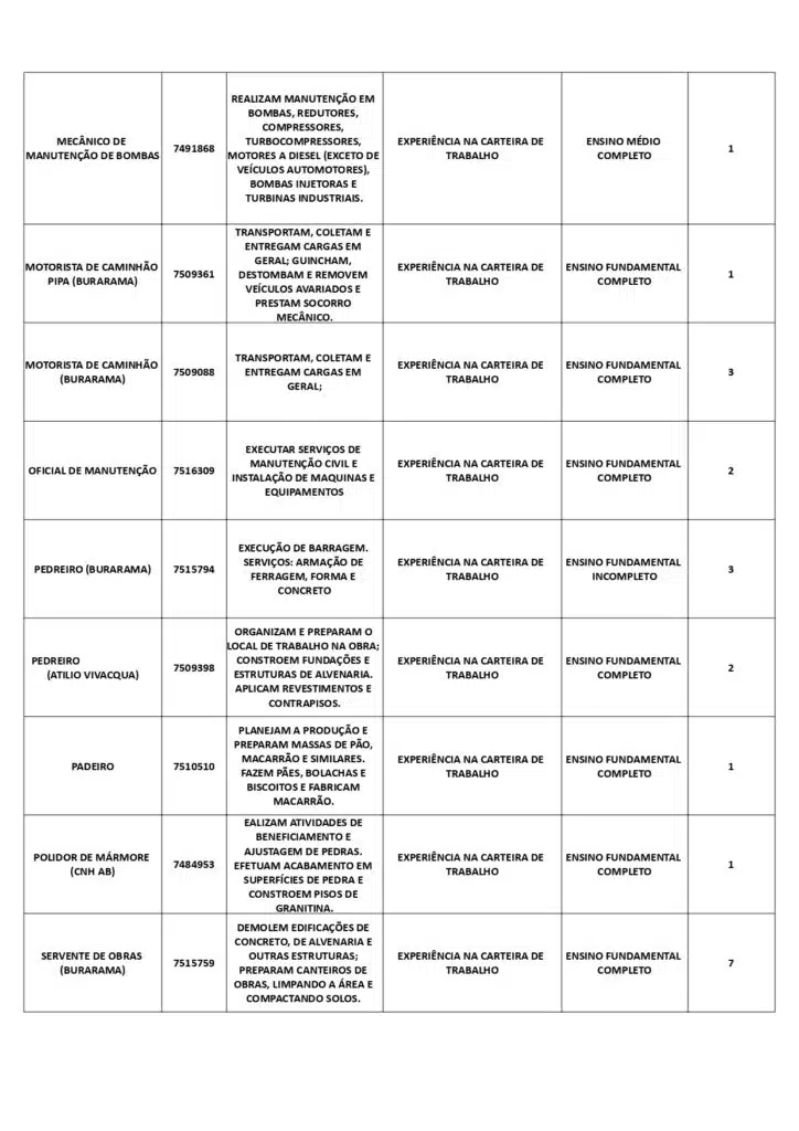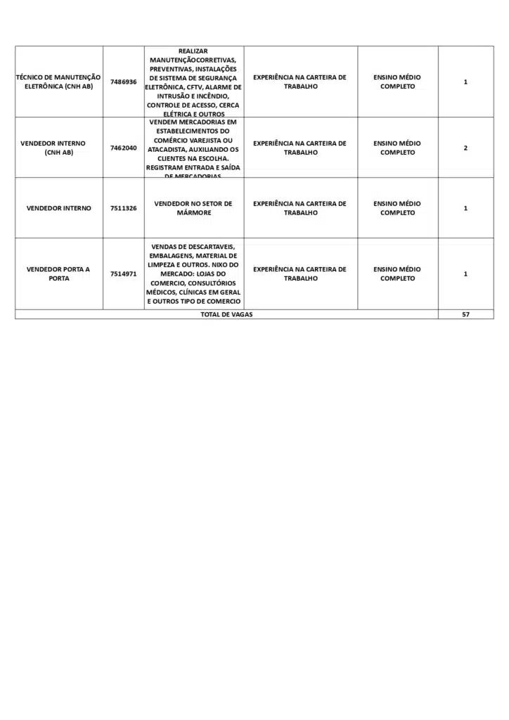 As oportunidades de emprego são para diversos cargos e níveis de escolaridade