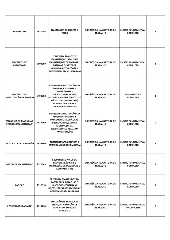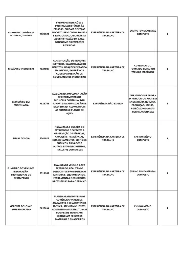 As oportunidades de emprego são para diversos cargos e níveis de escolaridade