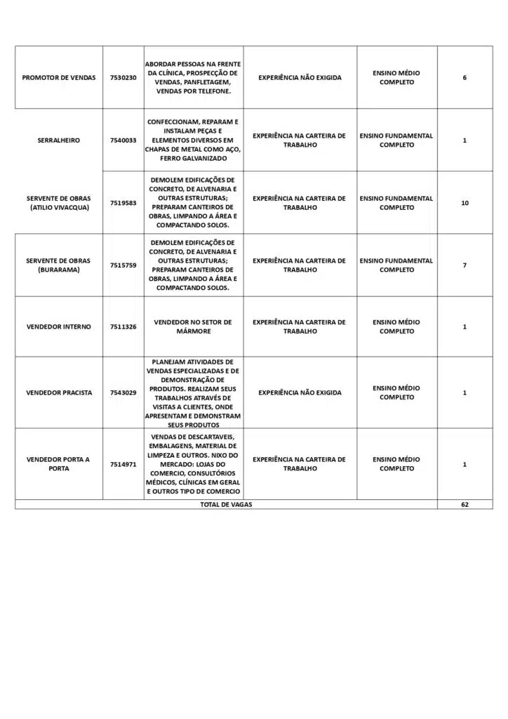 As oportunidades de emprego são para diversos cargos e níveis de escolaridade e para cidades do Sul do ES. No entanto, é preciso fazer um cadastro no Sine Cachoeiro para concorrê-las.