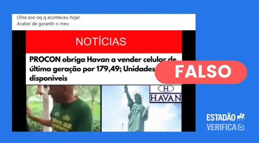 Esse anúncio, veiculado de forma enganosa, informa a suposta obrigação da loja Havan de comercializar iPhones pelo valor surpreendente de R$ 179,00.