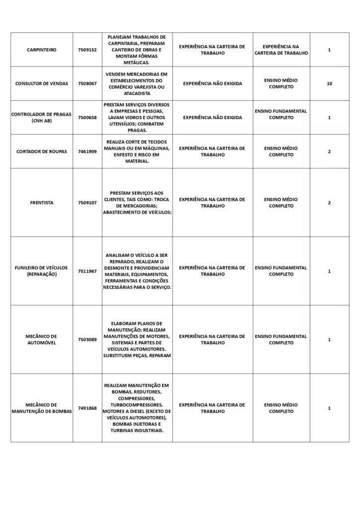 As oportunidades de emprego são para diversos cargos e níveis de escolaridade