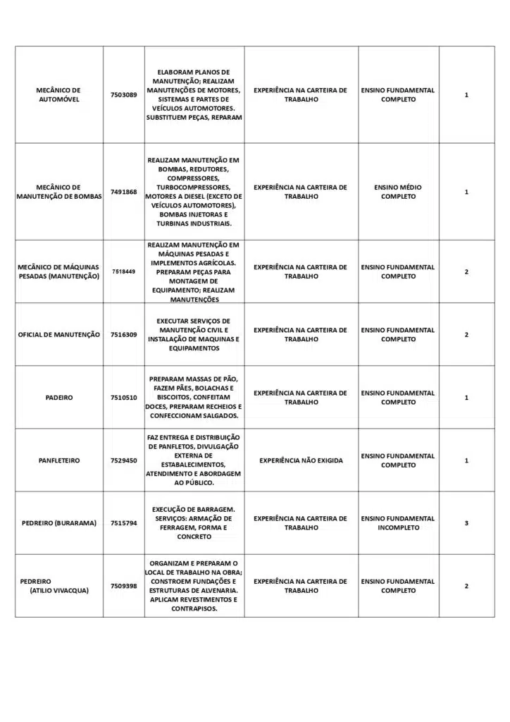 As oportunidades de emprego são para diversos cargos e níveis de escolaridade
