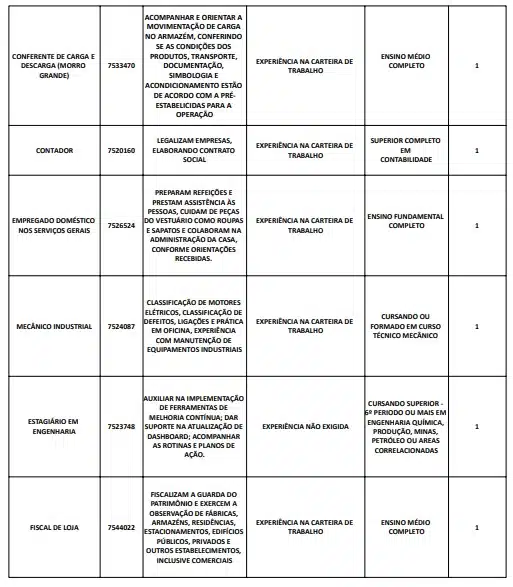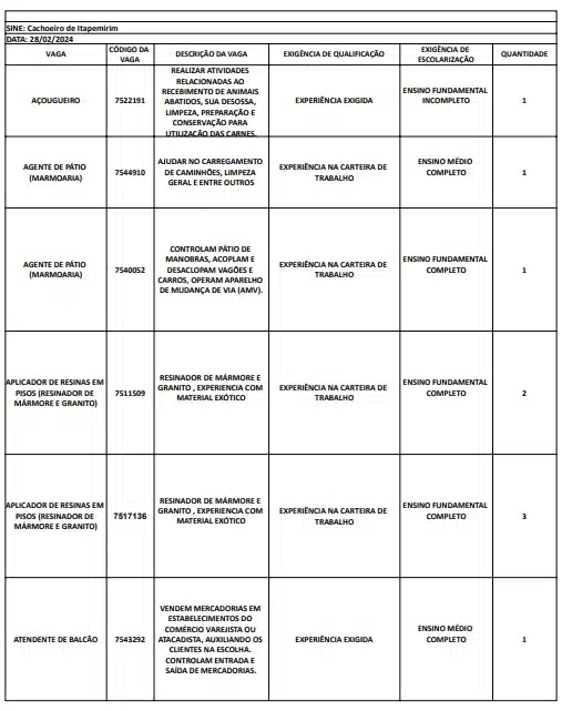 As oportunidades de emprego são para diversos cargos e níveis de escolaridade e para cidades do Sul do ES. No entanto, é preciso fazer um cadastro no Sine Cachoeiro para concorrê-las