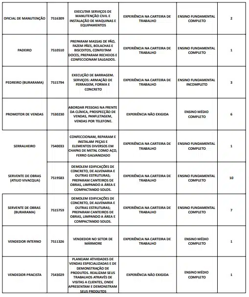 Receba as principais notícias no seu WhatsApp! clique aquiAs oportunidades de emprego são para diversos cargos e níveis de escolaridade e para cidades do Sul do ES. No entanto, é preciso fazer um cadastro no Sine Cachoeiro para concorrê-las.