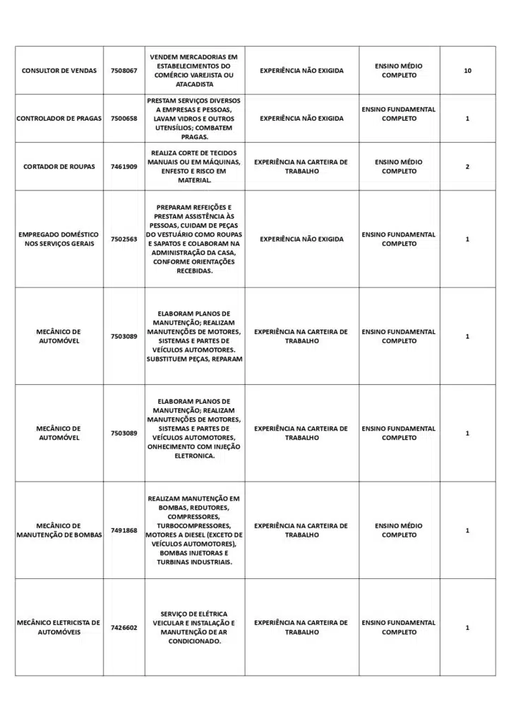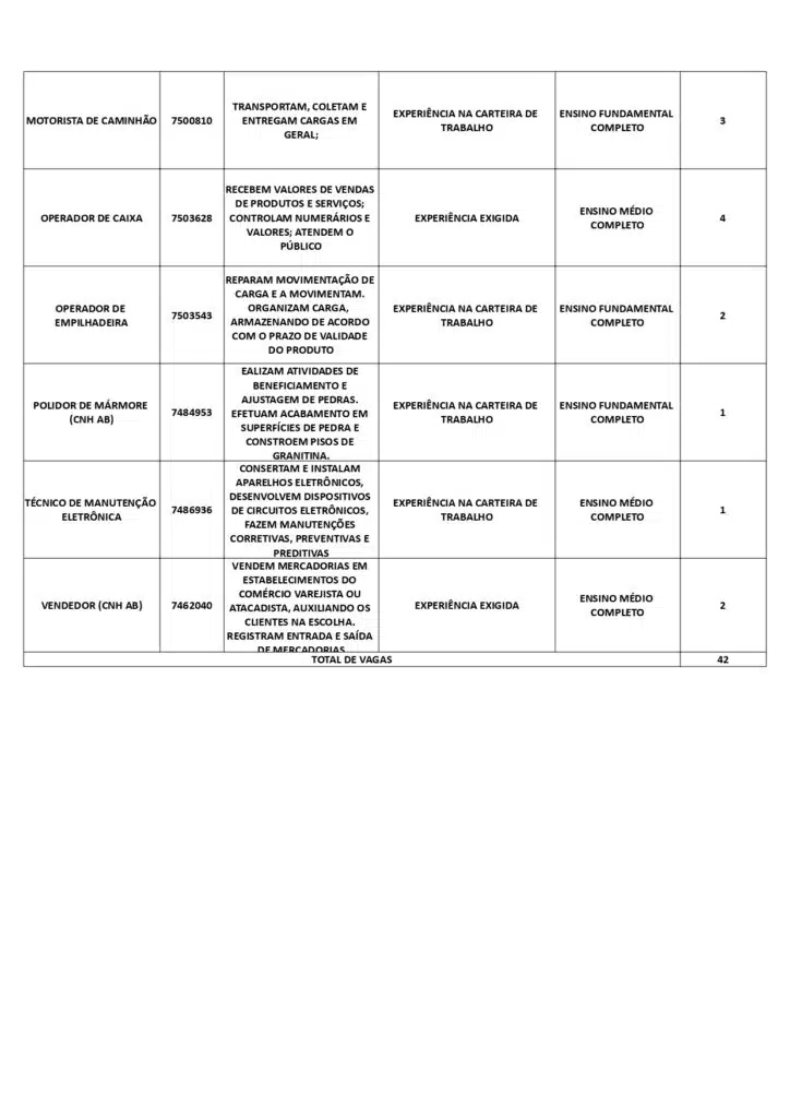 As oportunidades de emprego são para diversos cargos e níveis de escolaridade