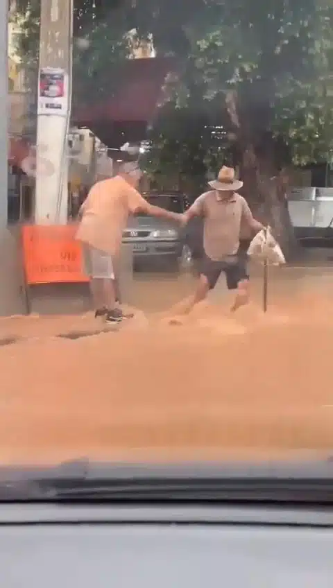Receba as principais notícias no seu WhatsApp! clique aquiImagens gravadas por um motorista que passava pelo local mostram a força da água e a dificuldade do idoso em conseguir se restabelecer. O incidente foi registrado no Guandu, região central da cidade, que amanheceu com as ruas completamente alagadas.