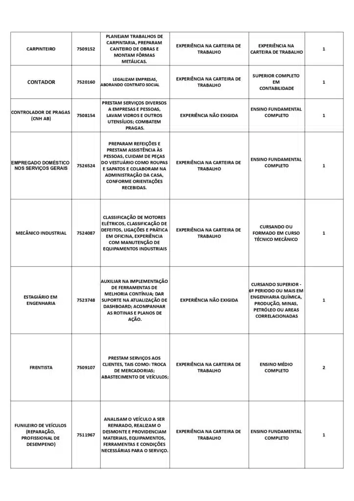 As oportunidades de emprego são para diversos cargos e níveis de escolaridade