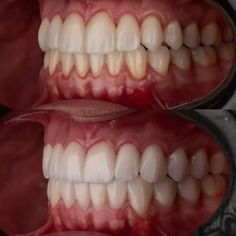 Ainda que Arthur Picoli e a clínica não tenham descrito o preciso procedimento, as imagens apontam para mudanças no próprio formato dos dentes