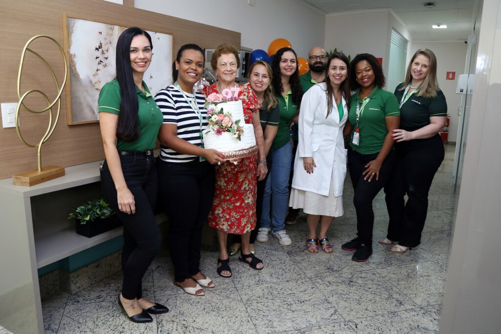A equipe do Idoso Bem Cuidado, da Unimed Sul Capixaba, fez uma surpresa para a cliente Dalziza Volpato Zanette (Dona Quita) pelo seu aniversário de 97 anos, nesta quinta-feira (21). Foi realizada uma recepção especial para ela com bolas, bolo e alegria, no novo espaço da cooperativa.
