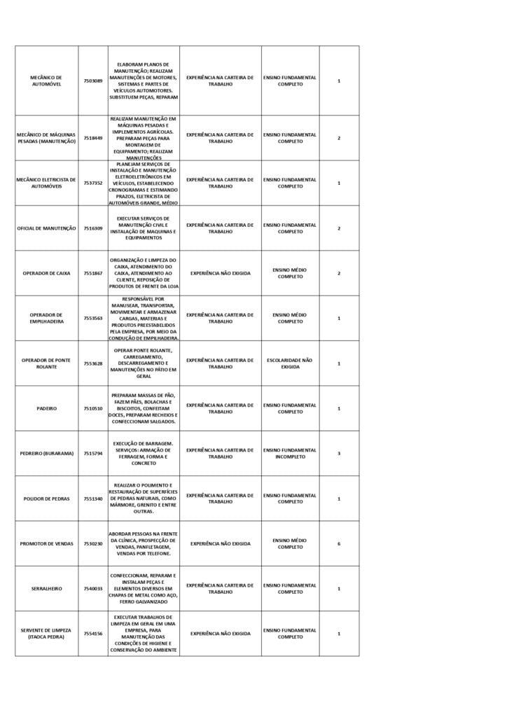 As oportunidades de emprego são para diversos cargos e níveis de escolaridade e para cidades do Sul do ES. No entanto, é preciso fazer um cadastro no Sine Cachoeiro para concorrê-las.