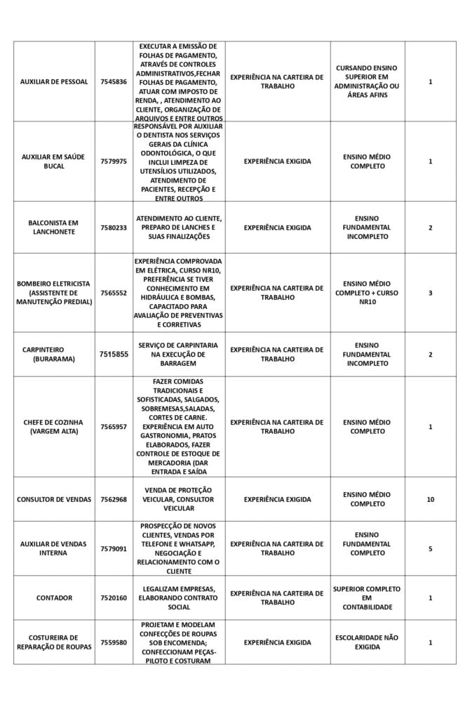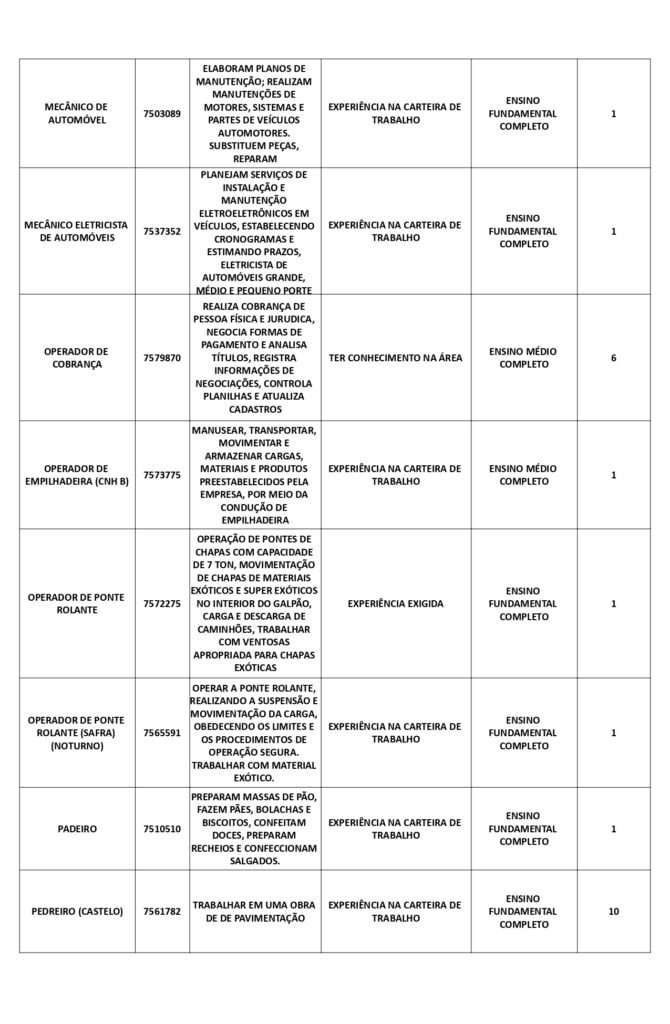 As oportunidades de emprego são para diversos cargos e níveis de escolaridade