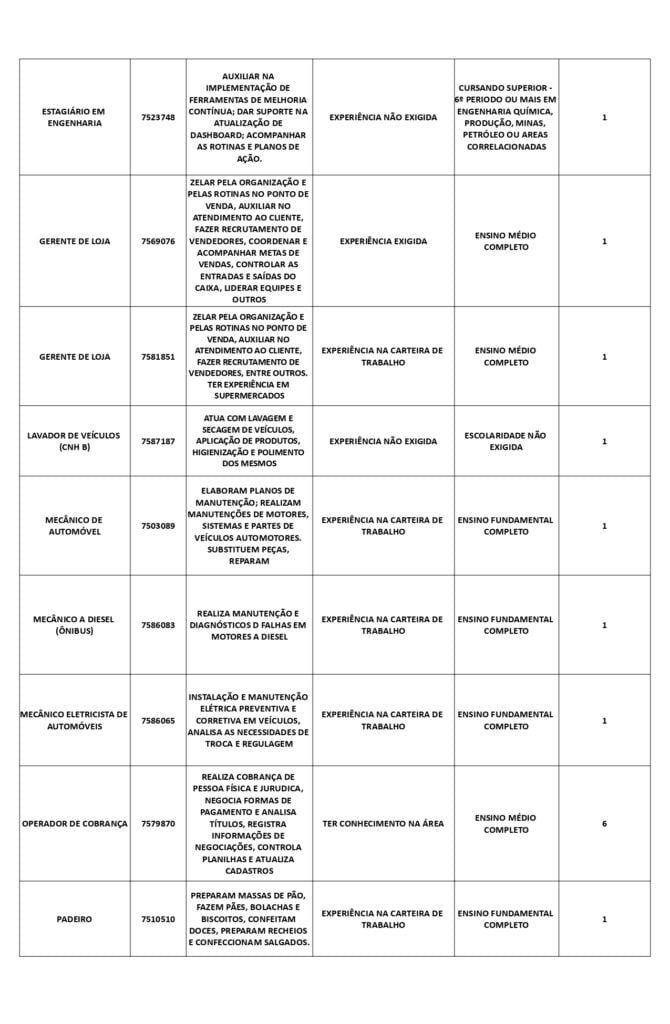 As oportunidades de emprego são para diversos cargos e níveis de escolaridade