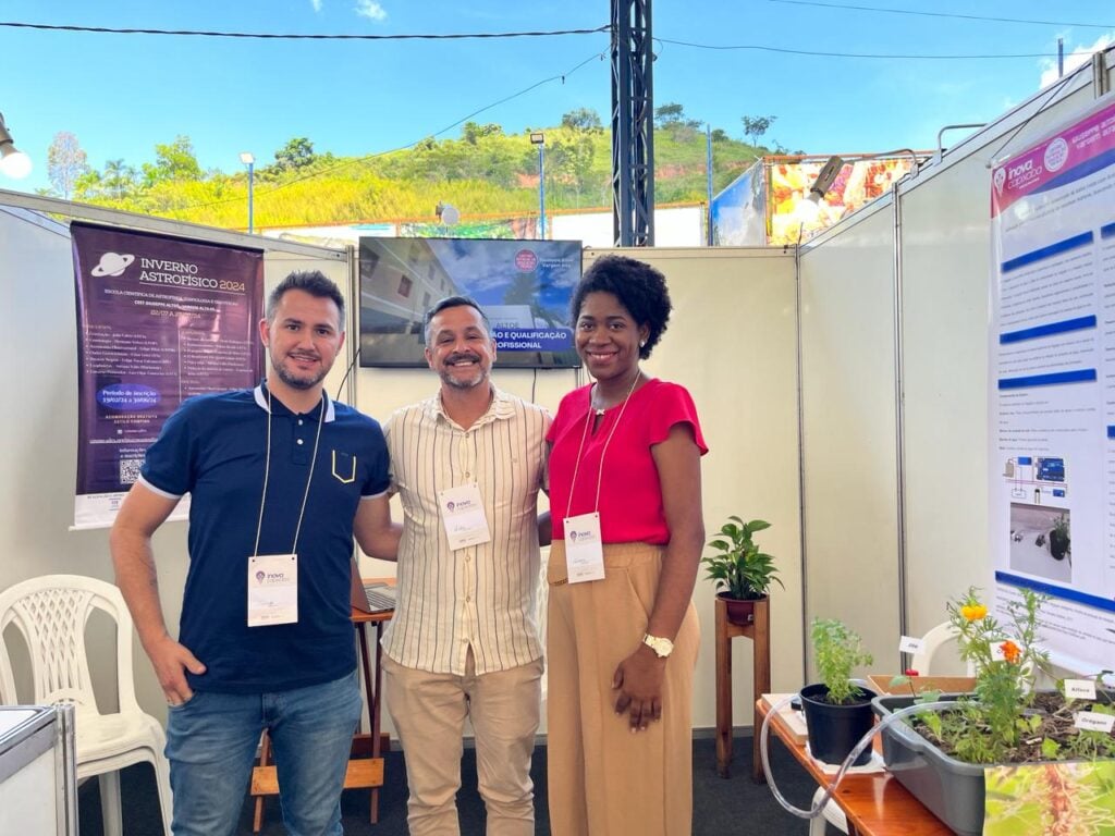 Em outro stand temos professores e o diretor do Centro Estadual de Educação Técnica (CEET) Giuseppe Altoé, localizado no município de Vargem Alta. Tiago Suhett Lomeu é professor de informática e trouxe uma mostra do projeto de irrigação desenvolvido na escola. O equipamento promete economia e praticidade para os produtores na hora de irrigar o solo.