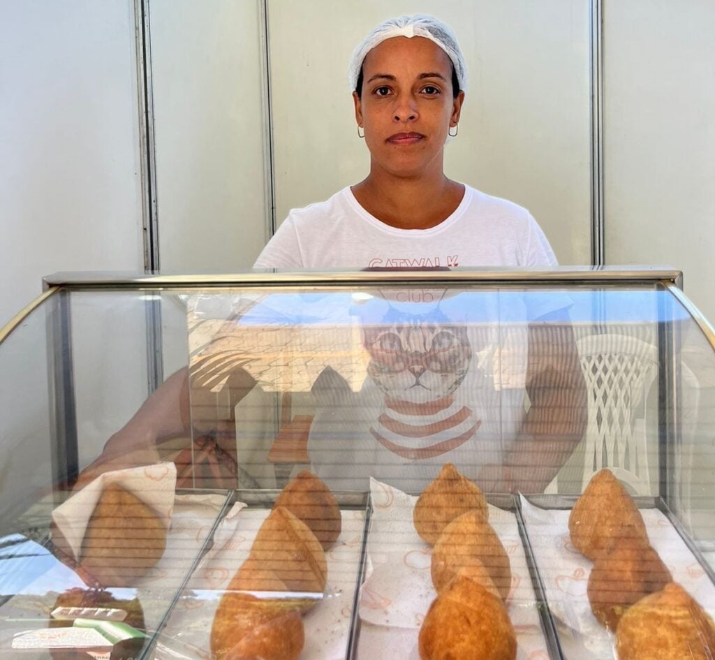 No primeiro dia da Feira Inova Capixaba – Agricultura In Foco – Fórum de Piscicultura, em Muniz Freire, vários stands estão sendo comandados por mulheres empreendedoras do município. Parte dessas mulheres se formaram no curso Qualificar ES Empreendedor, na área de gastronomia.