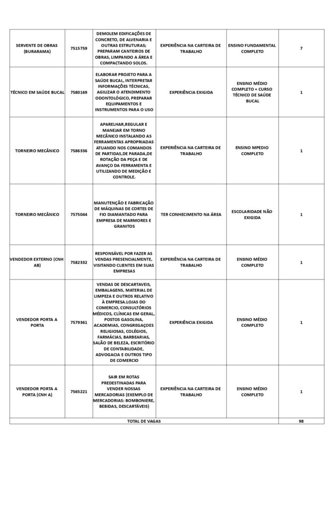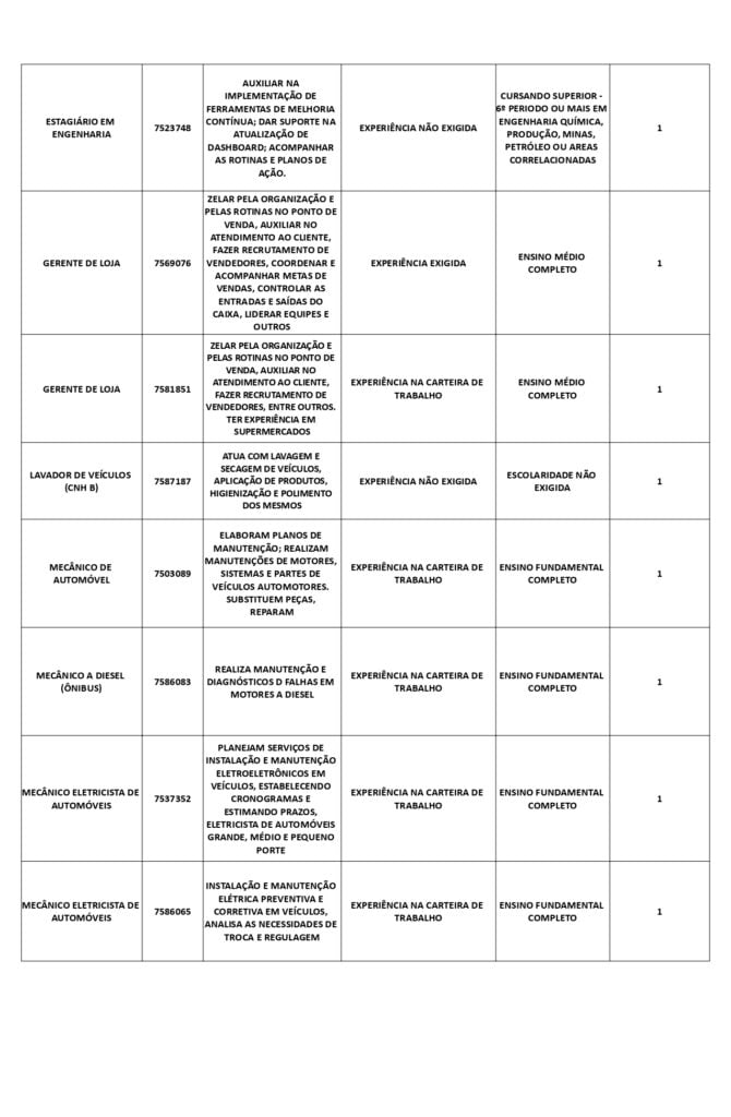 As oportunidades de emprego são para diversos cargos e níveis de escolaridade