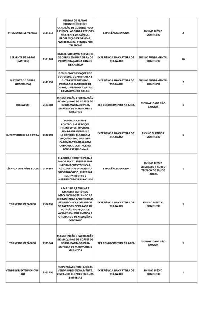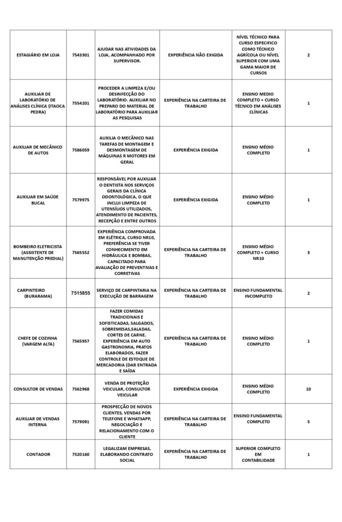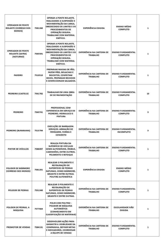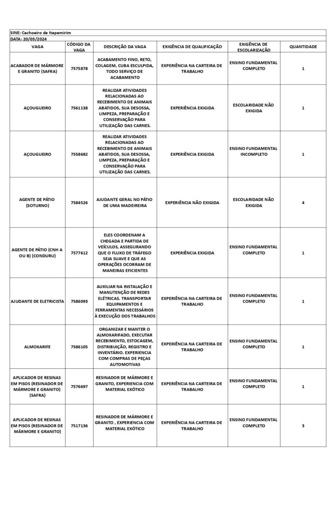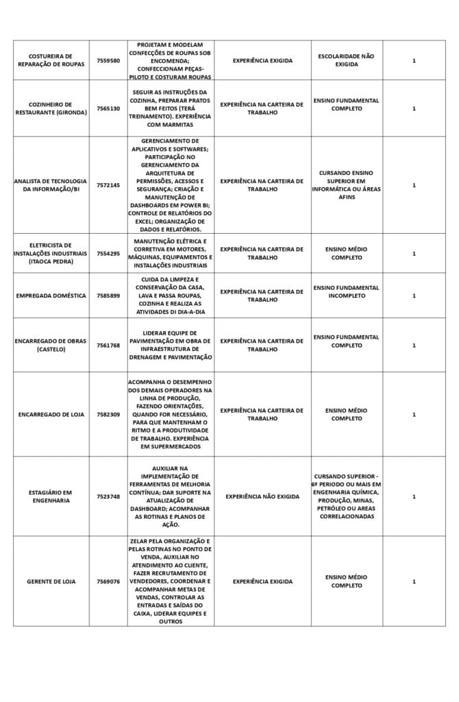 Receba as principais notícias no seu WhatsApp! clique aquiAs oportunidades de emprego são para diversos cargos e níveis de escolaridade e para cidades do Sul do ES. No entanto, é preciso fazer um cadastro no Sine Cachoeiro para concorrê-las.