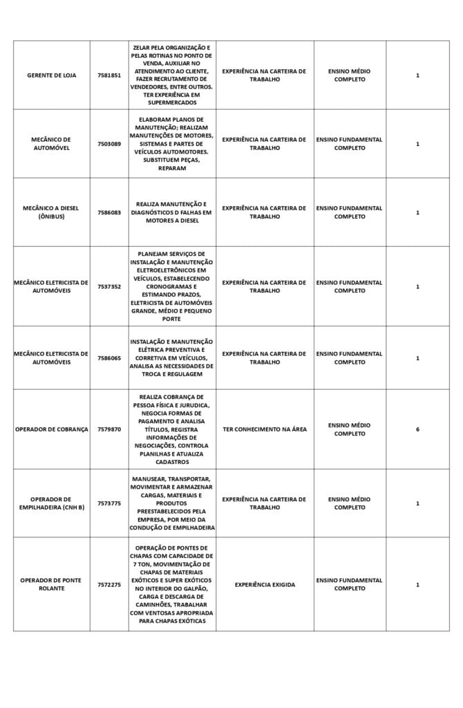 As oportunidades de emprego são para diversos cargos e níveis de escolarida