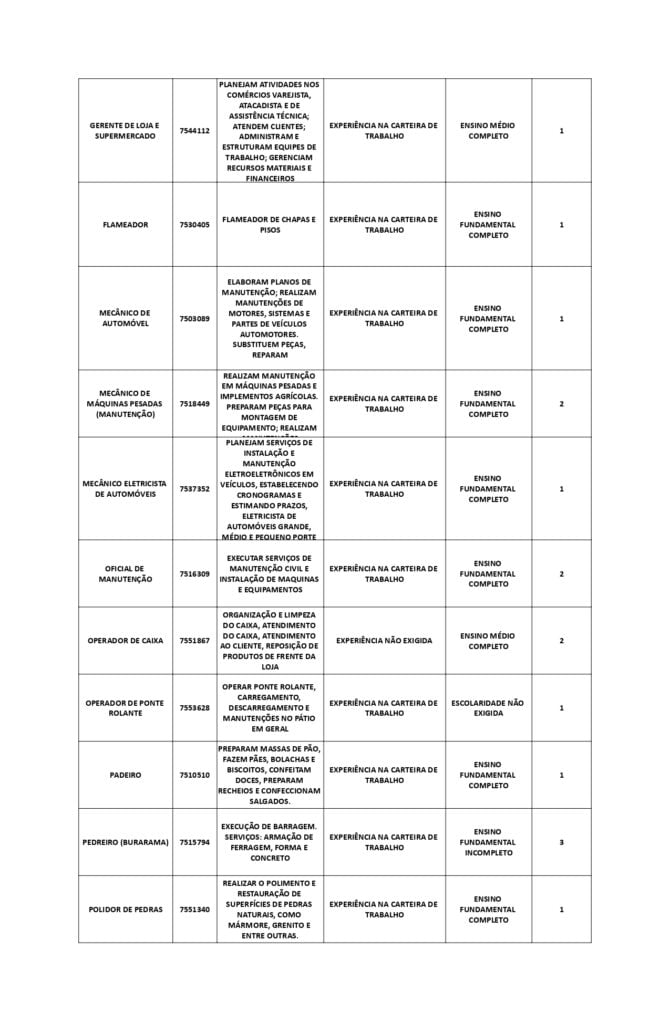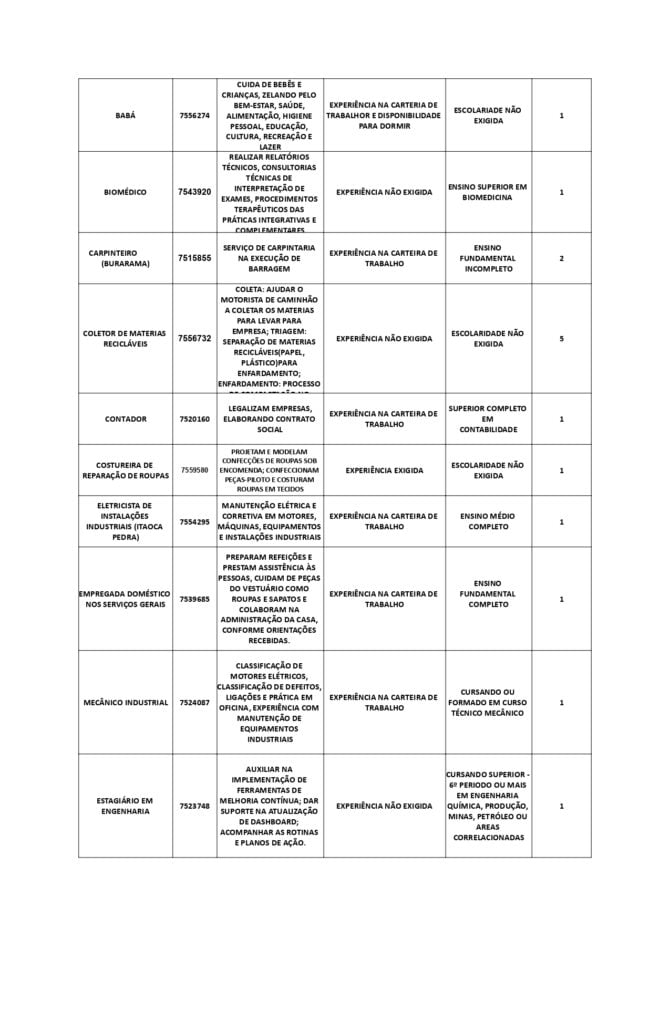 As oportunidades de emprego são para diversos cargos e níveis de escolaridade