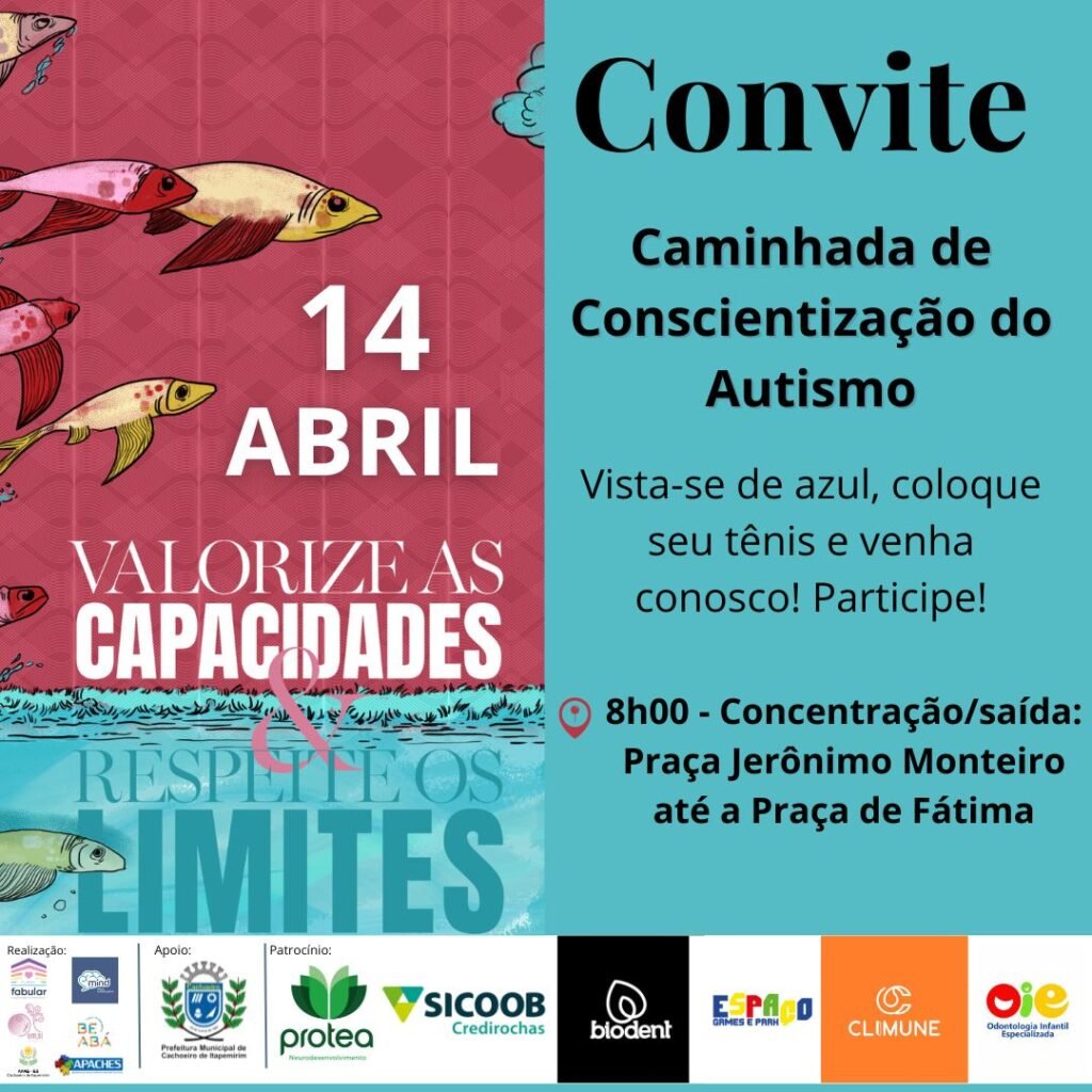 Cachoeiro de Itapemirim recebe no próximo domingo (14), mais uma edição da Caminhada de Conscientização do Autismo. O evento, realizado pela Associação de Pais de Autistas de Cachoeiro e Sul do ES (Apaches), faz parte da programação do Abril Azul.